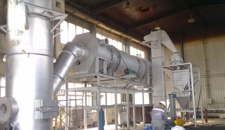 鋁屑前處理過程包括:由叉車或傳輸設備將待處理鋁屑運至受料斗,經地坑螺旋輸送機,由刮板機傳輸進入破碎機,對大顆粒鋁屑進行破碎;然后由2#刮板機將破碎后的鋁屑傳輸到脫油水機;再由3#刮板機將鋁屑傳輸到受料斗,由螺旋輸送機傳輸到回轉窯進行鋁屑烘干;烘干后鋁屑進行磁選計量處理,最終傳輸到達鋁屑熔化渦流室。